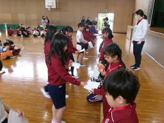 14日(水)、1年生を迎える会を行いました。6年生が準備してくれたアーチを嬉しそうにくぐって入場してきた1年生。各学年から心のこもったプレゼントをもらって喜んでくれました。2~6年生の皆さん、一生懸命プレゼントをつくってくれてありがとう。1年生のみなさん、困ったときはいつでも優しいお兄さん、お姉さんに聞いてくださいね。