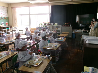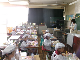 1年生がはじめて、給食の時間を迎えました。今日は豪華メニューで、給食センターのみなさまの心のこもった「おめでとうメニュー」でした。メロンパンやイチゴゼリーに、みんな大喜び。「美味しい!」と笑顔があふれました。一年生のみなさん、これから毎日、給食が出ますよ。お楽しみに!苦手なものでもみんなで食べれば美味しいので、明日も楽しく給食をいただきましょう!