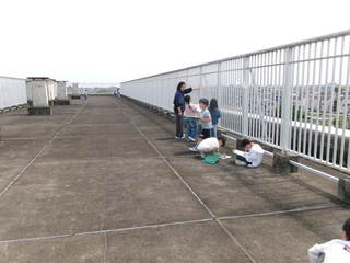 3年生が、社会科で羽生市の土地利用について学習しています。はじめて学校の屋上に上がり、学校の周囲の東西南北をみた子供達は大喜び。「あ、私の家だ!」「あそこ、おばあちゃんち!」そうした発見から、「南の方が家が多いね。」「北は田んぼが多いよ。」等、土地利用についてもよい気付きが出てきました。さすが3年生!社会科に対しても、やる気満々です!