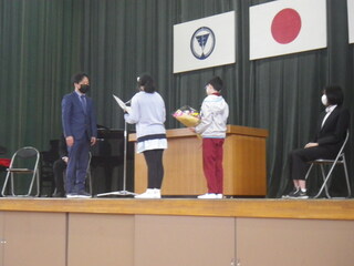 4月23日(木)の5校時、離任式を行いました。転出された4人の先生にお越しいただきました。子供達は心をこめて書いた手紙をお渡しして、「離任式の歌」を全校で歌い、先生方に感謝の気持ちを伝えました。歌っているうちにたくさんの子供が涙ぐみ、最後は声がかすれて歌えない子もいました。それだけ、別れがつらく、楽しい思い出がたくさん浮かんできたのだと思います。美しい光景でした。川俣小の子供達の心の美しさに触れた気がしました。