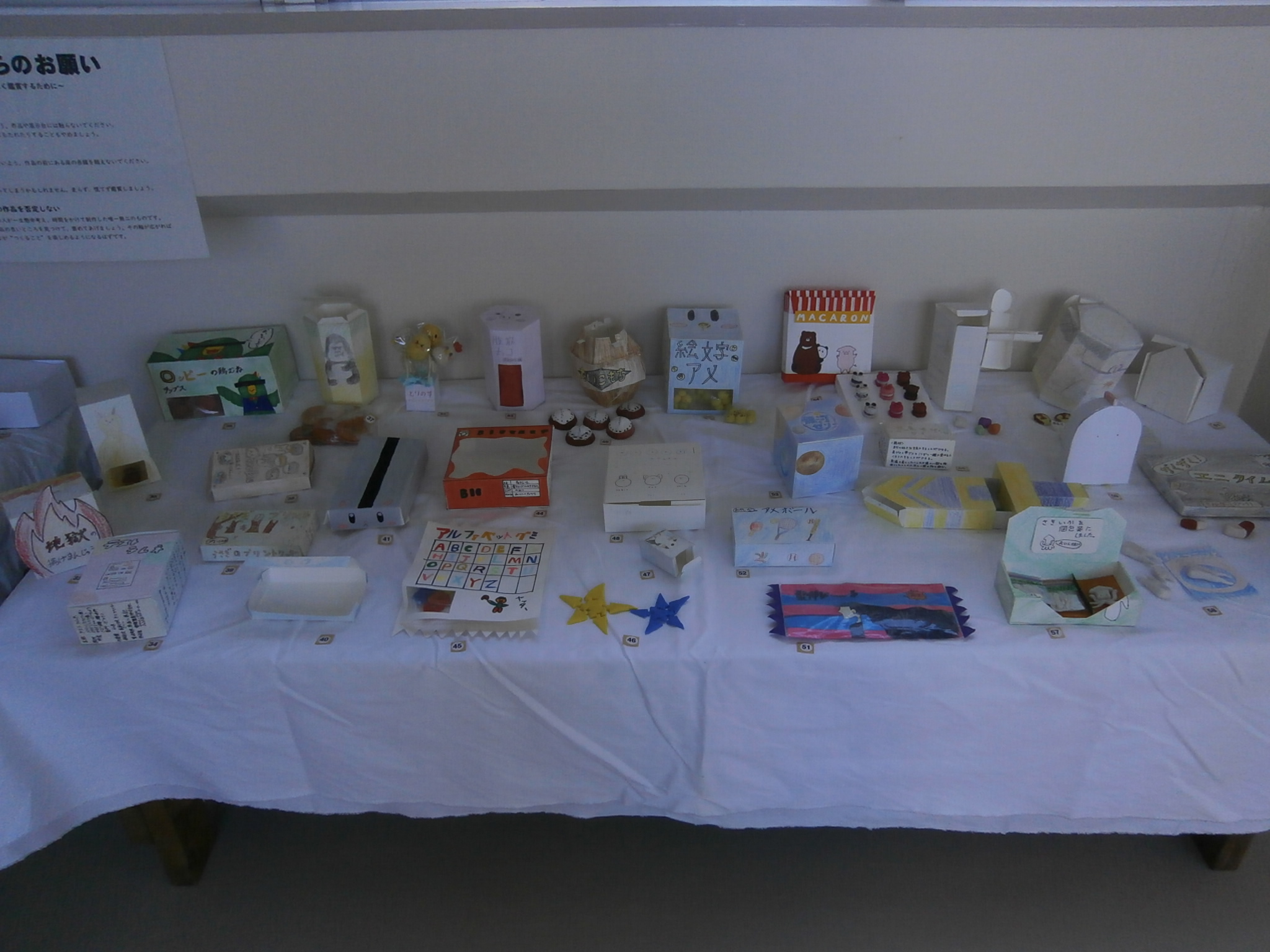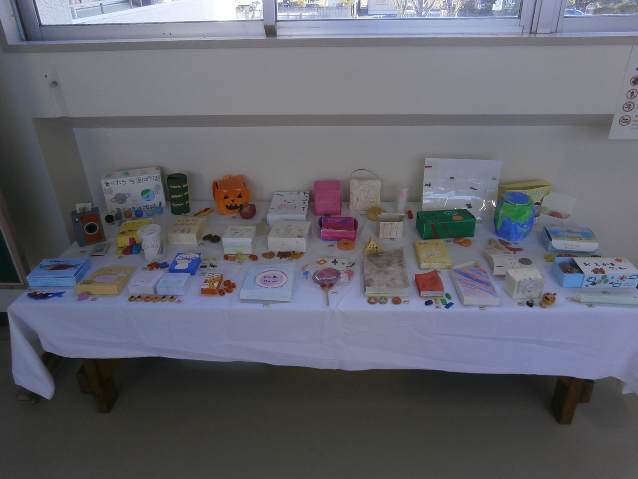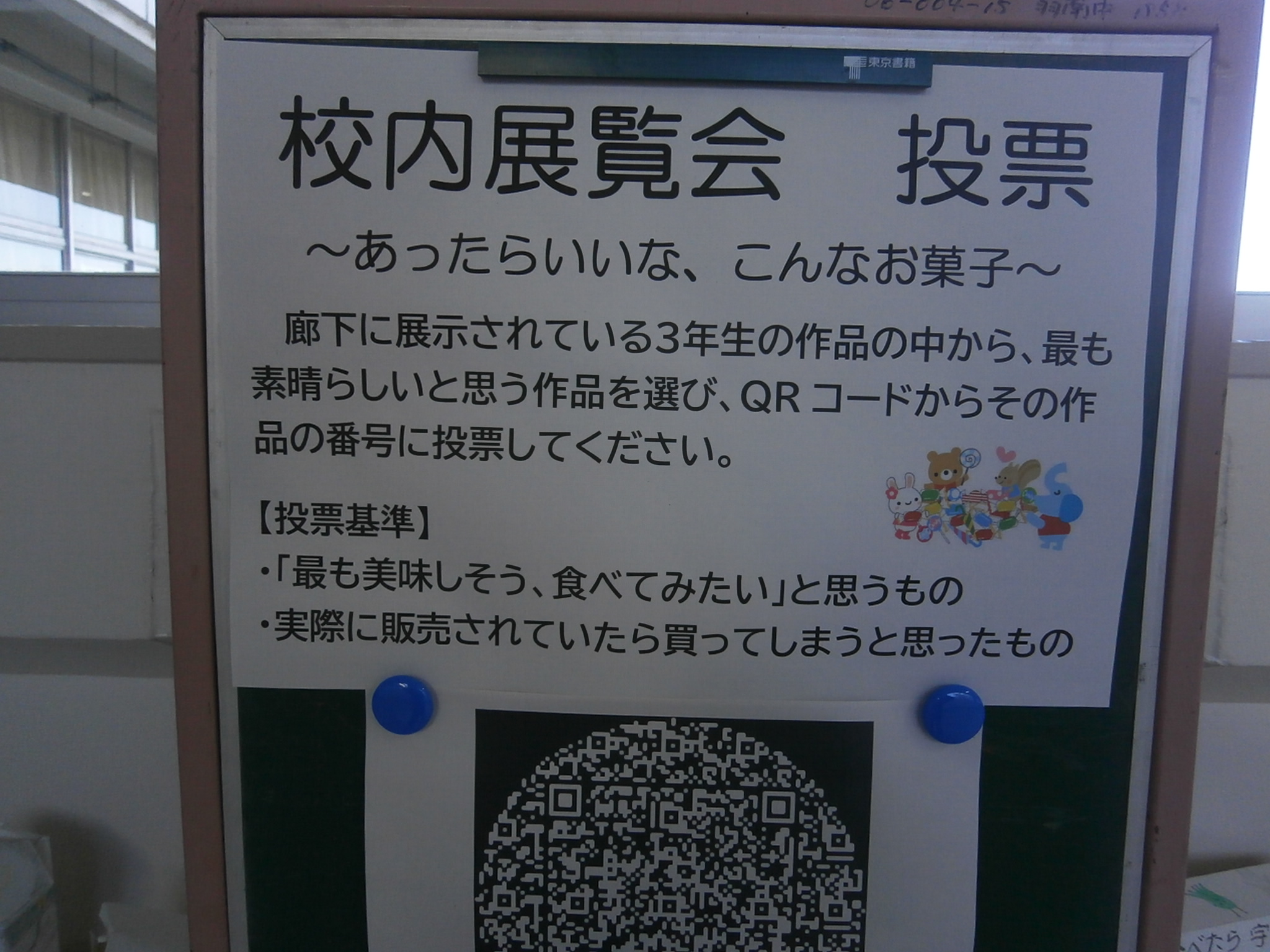 本日から13日(金)まで、「校内展覧会(3年生)」が展示しています。3年生は、テーマを「あったらいいな、こんなお菓子」とし制作しました。今回は、「最もおいしそう、食べてみたいもの」「実際に販売されていたら、買ってしまうと思ったもの」の観点で投票をしてもらう企画となっています。