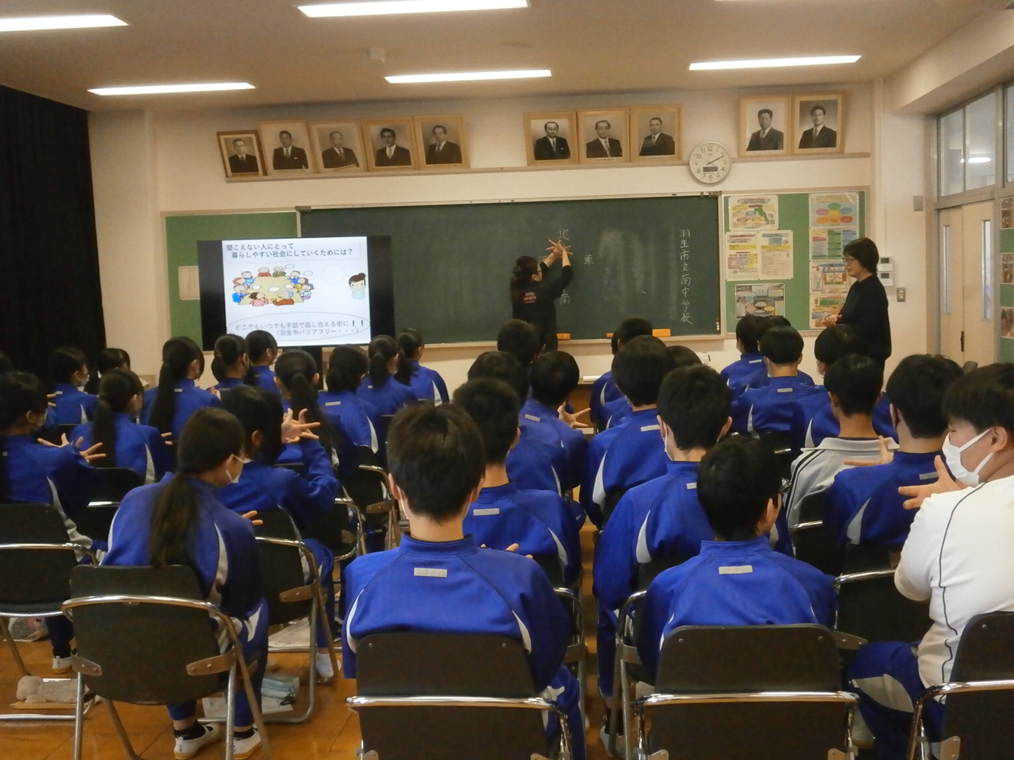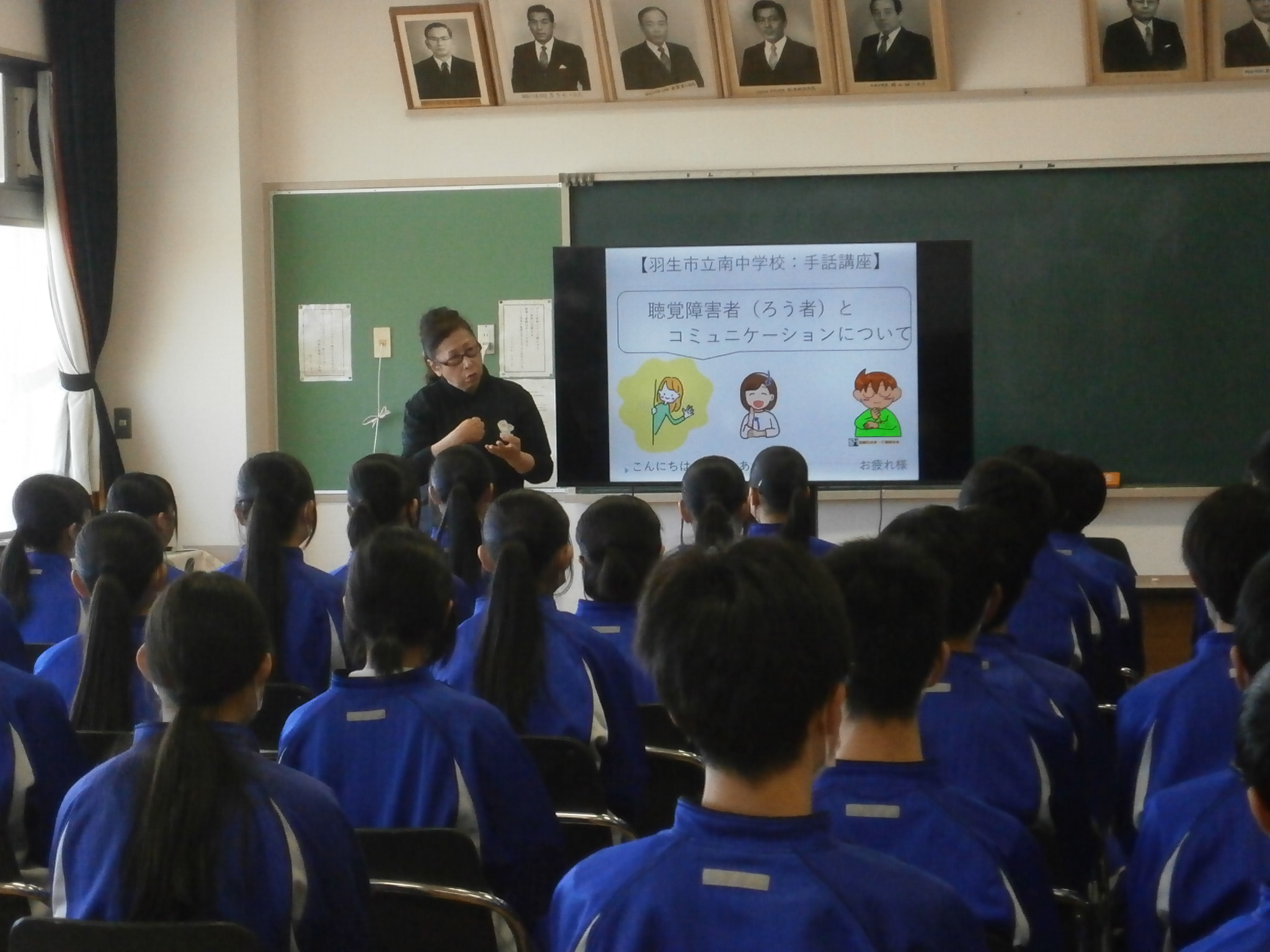 本日5・6時間目に、2年生が総合的な学習の時間に「手話について学ぼう」を行いました。