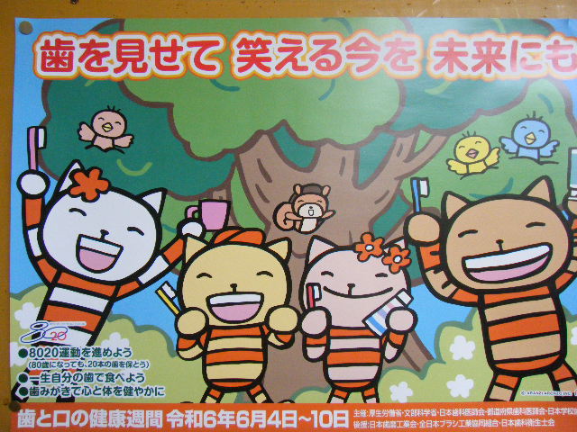 これは、本年度の「歯と口の健康週間」の標語です。「歯と口の健康週間」は、全国で実施され、毎年6月4日~10日となっています。