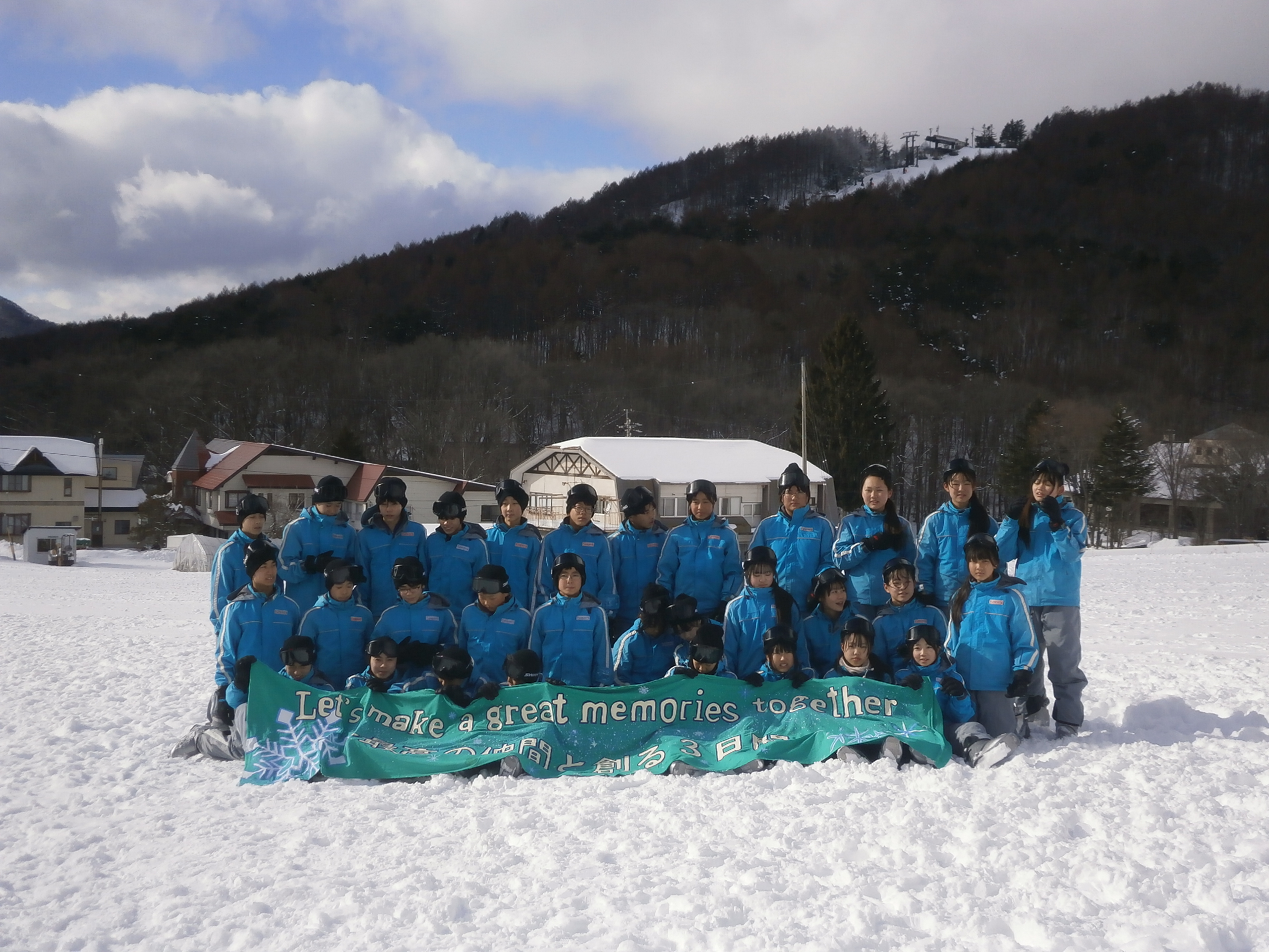 1月14日(水)~16日(金)、1年生が、長野県上田市にある「菅平高原スノーリゾート」で、「スキー学校」を実施しました。「Let's make a great memories together~最高の仲間と創る3日間~」をスローガンとし、10月から実行委員を組織し、取り組んできました。その成果が、大いに発揮でき、最高の思い出づくりができました。