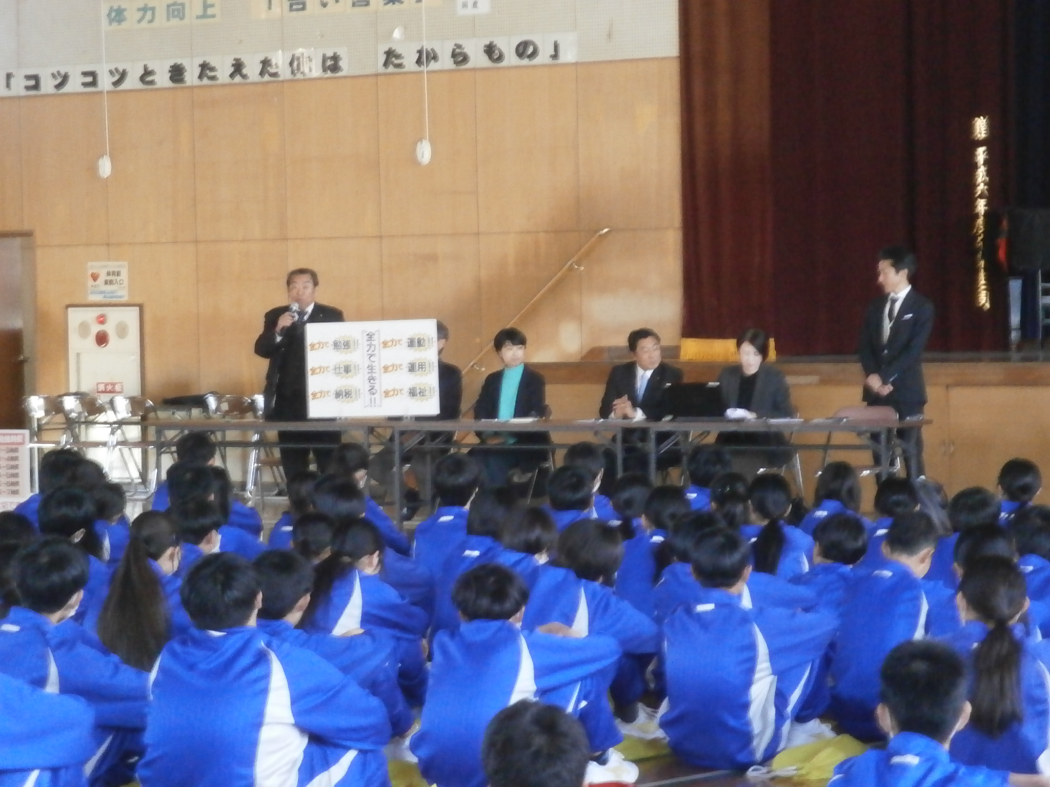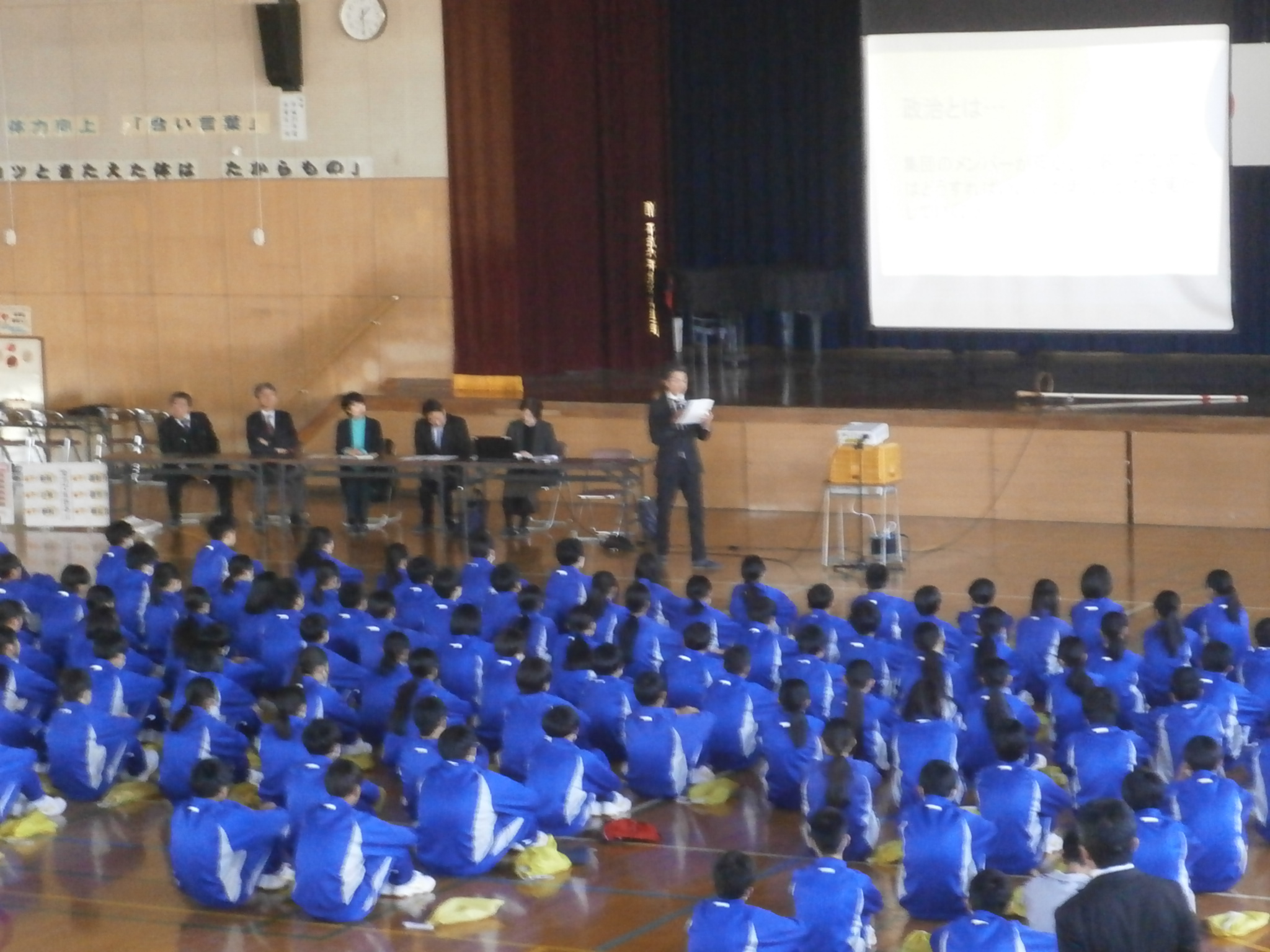 本日の5時間目に、2年生を対象に「羽生市議会出前講座」を6人の市議会議員の方に来ていただき実施しました。