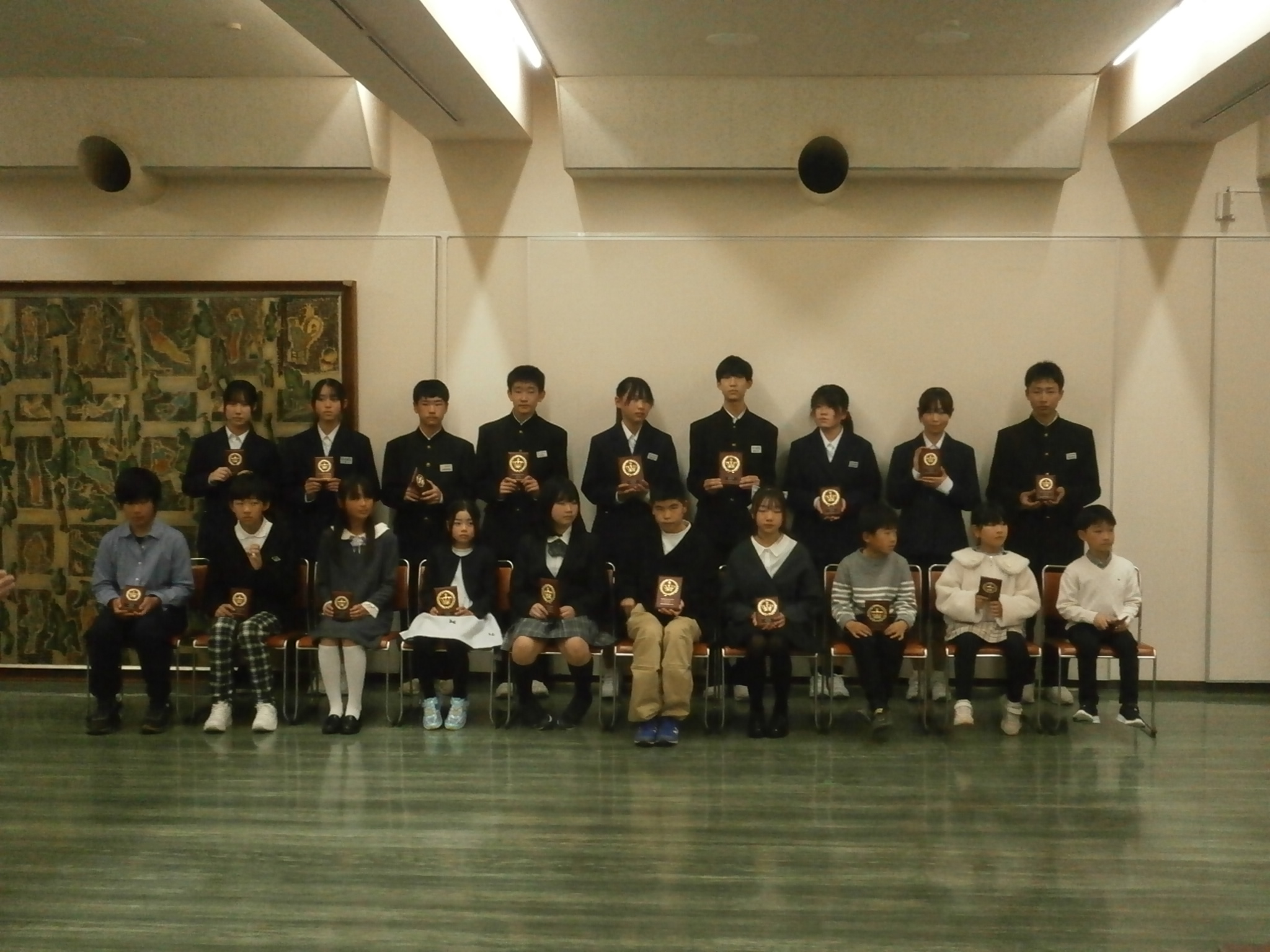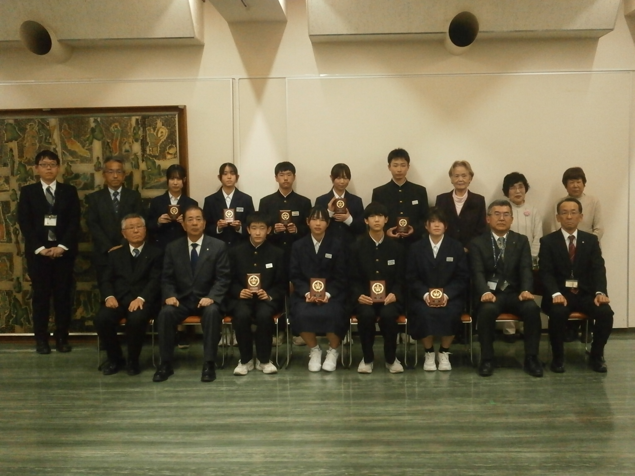 本校から「太田玉茗賞」1名、「優秀賞」2名、「奨励賞」2名を受賞し、河田市長から直接賞状をいただきました。