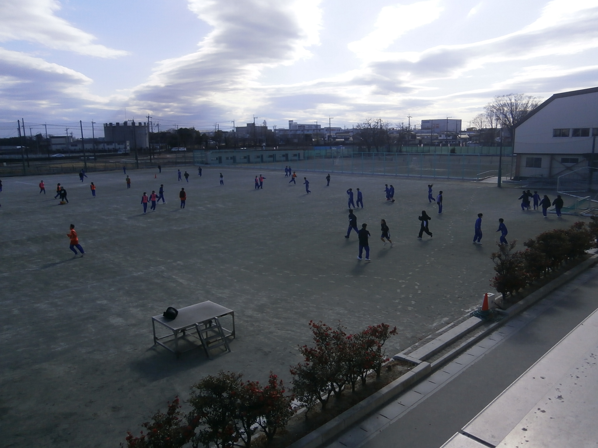 本日昼休み、1年生体育委員企画の「PUT(Physical Up Time)」が実施されました。風の冷たい校庭でしたが、多くの生徒が参加し(先生方の参加もありました)、動き回っていました。