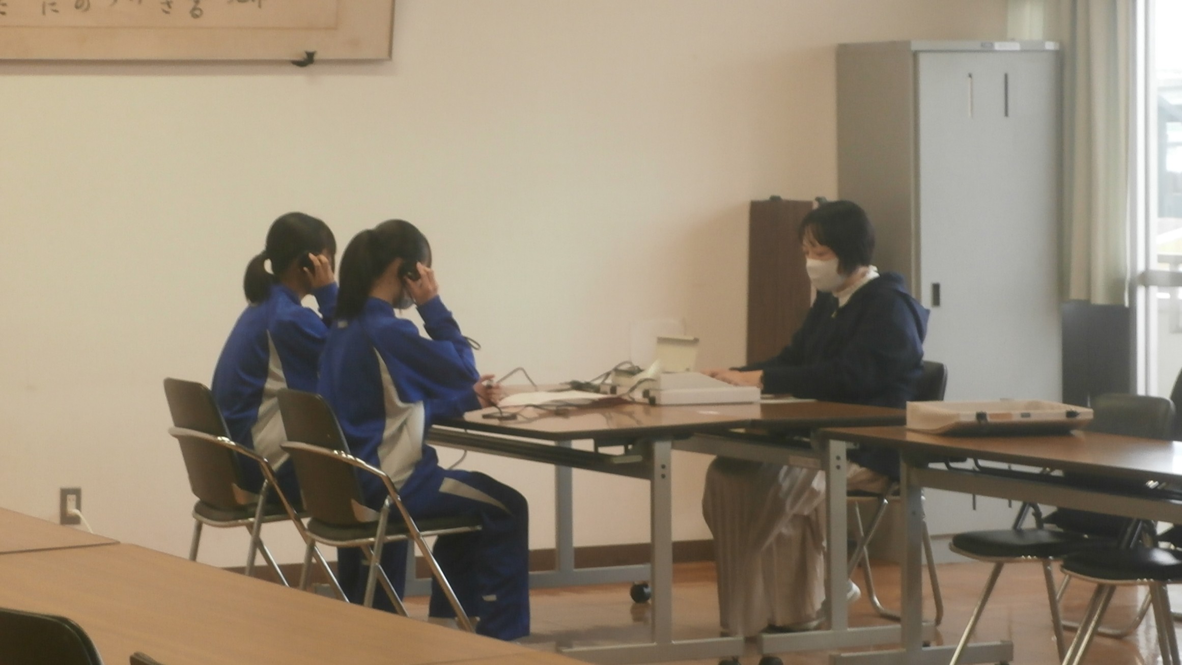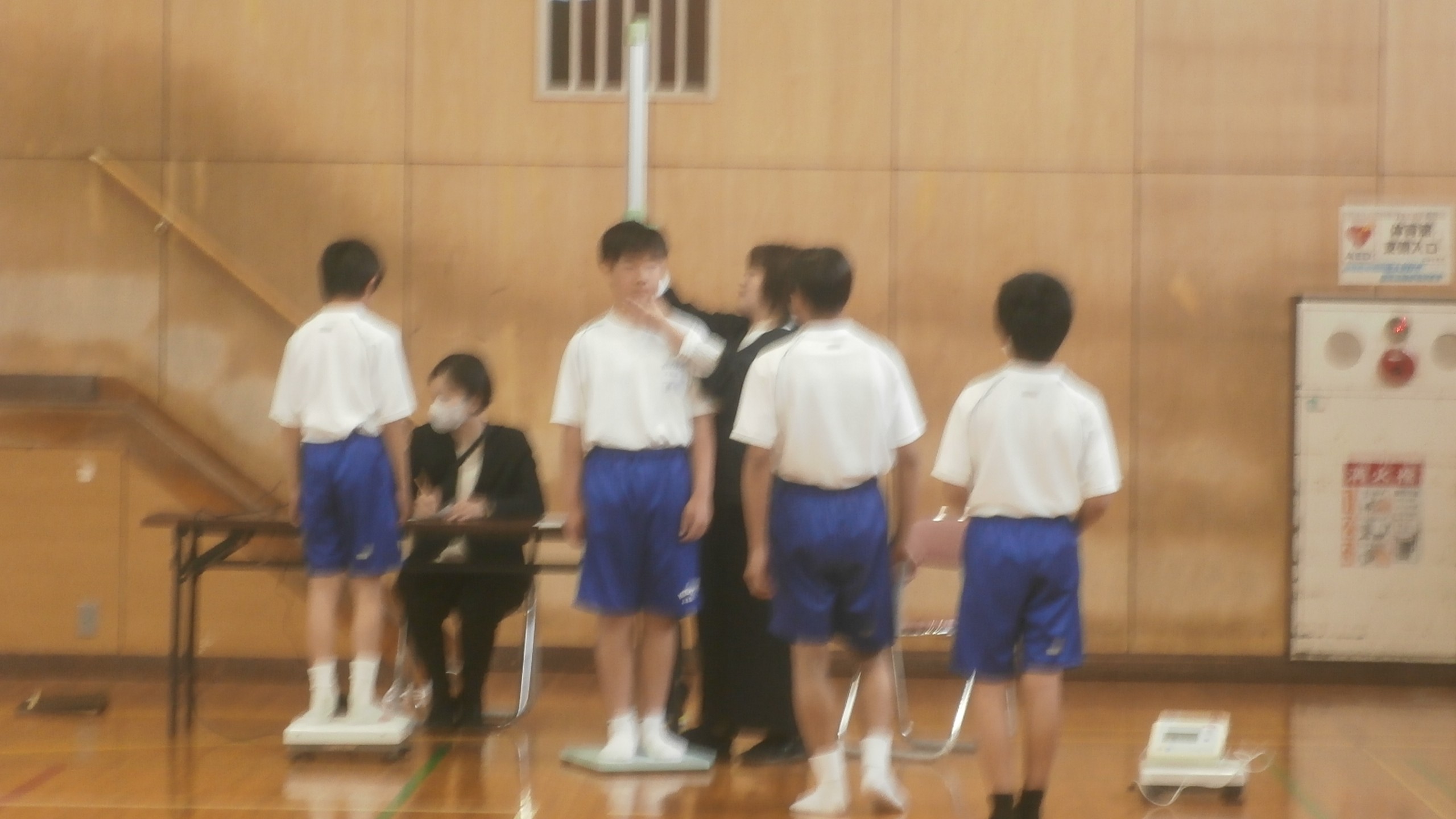 本日1校時から3校時の予定で、身体測定が行われました。身長、体重、視力、聴力(1,3年生のみ)を測りました。