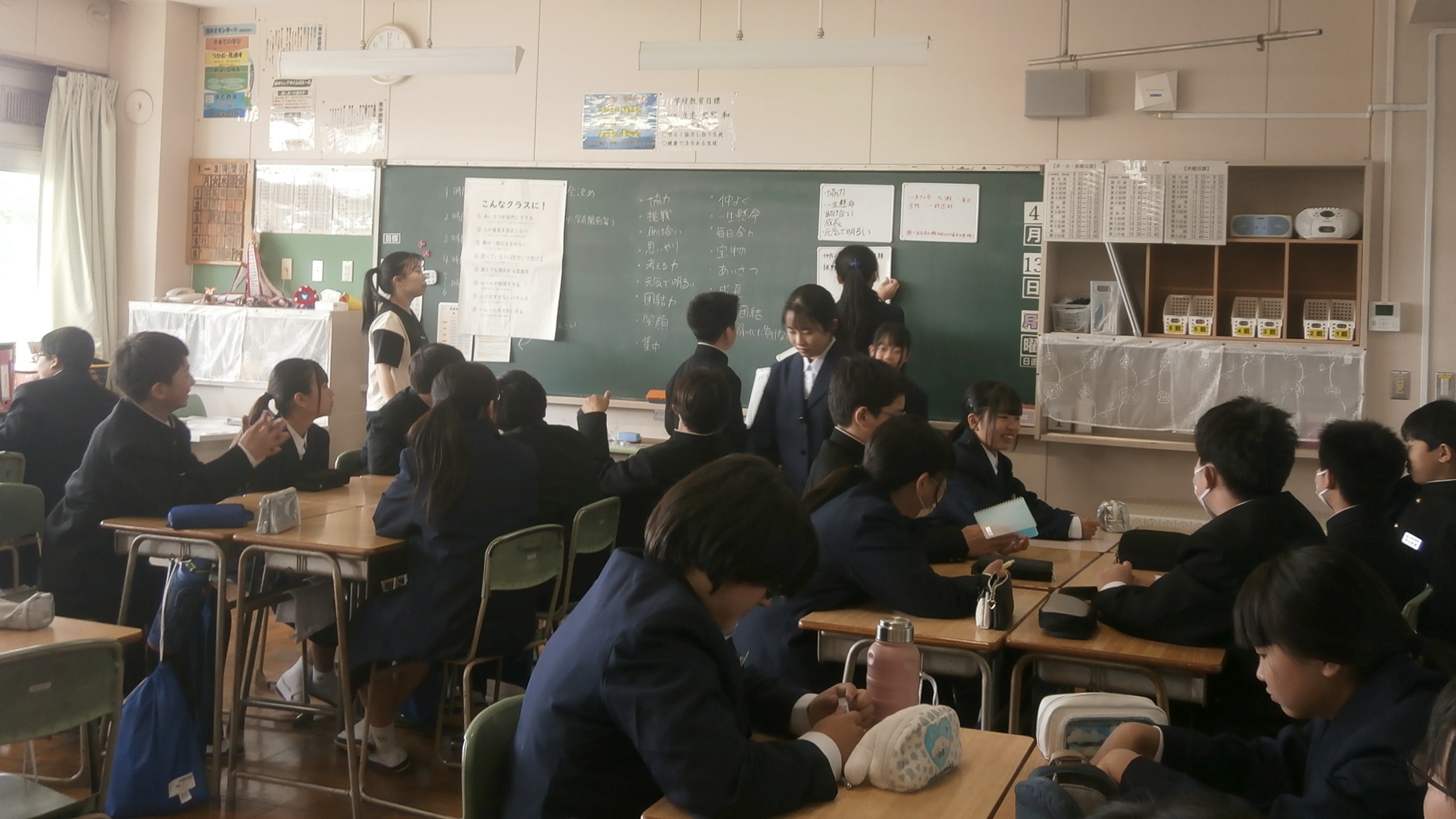 各学年の授業の様子です。学級目標を作成しているクラスが多くありました。
