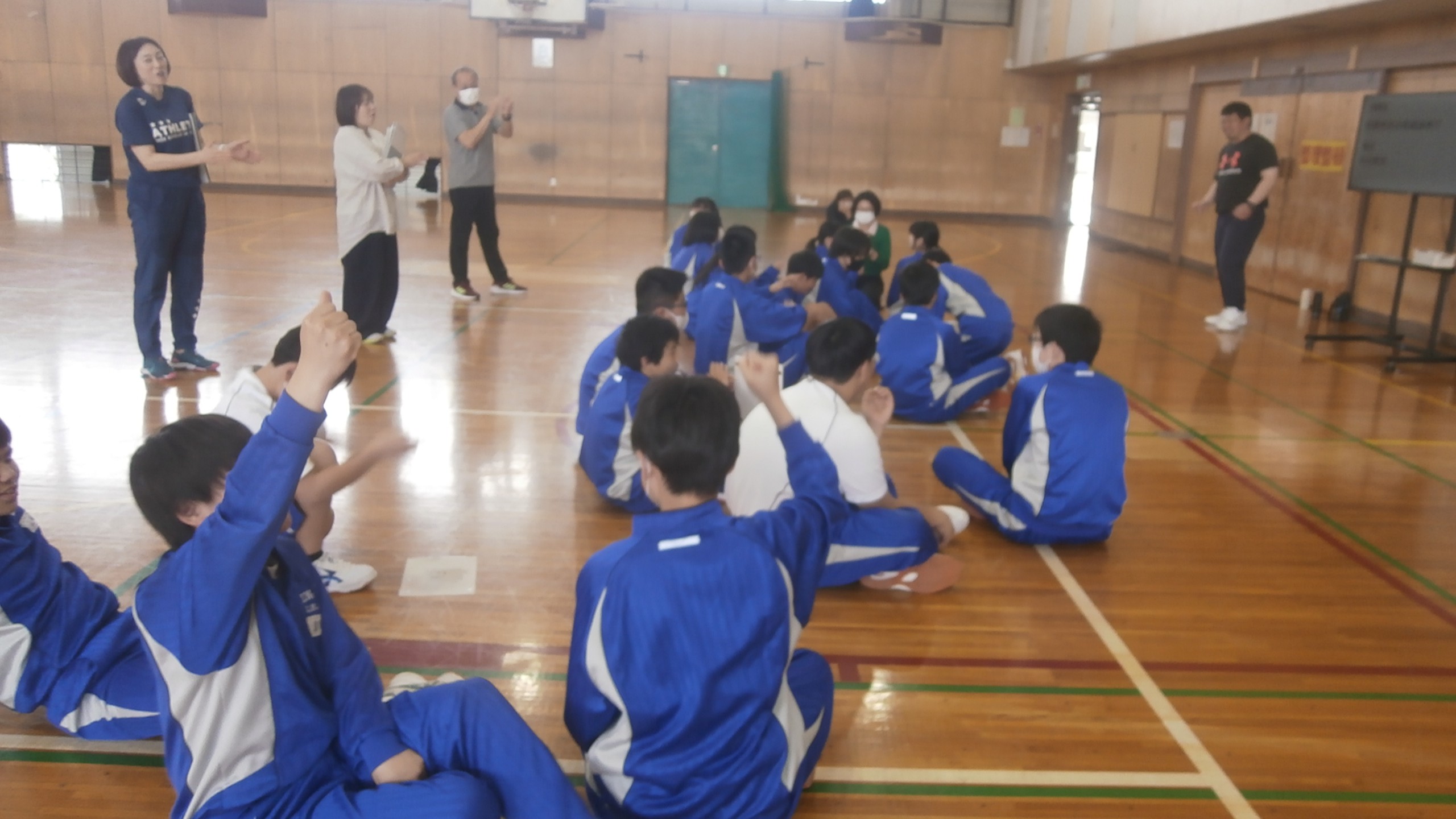 6,7,8,9組 体育館で活動(クイズに答えている場面です)