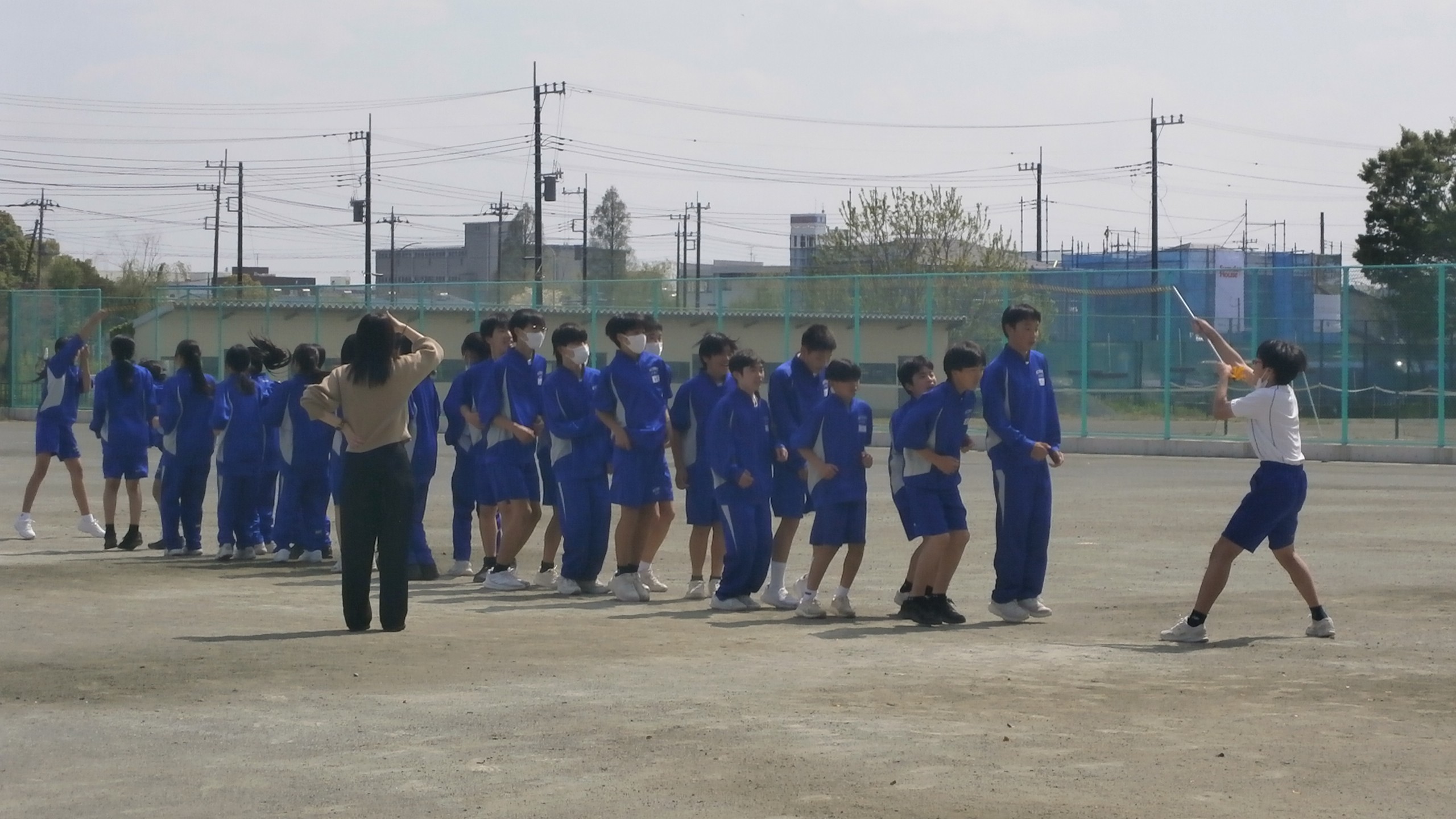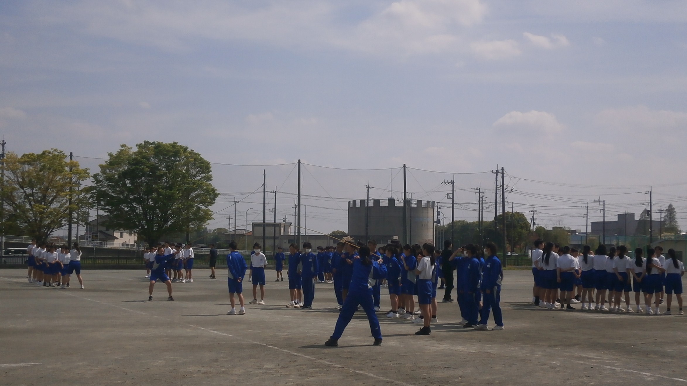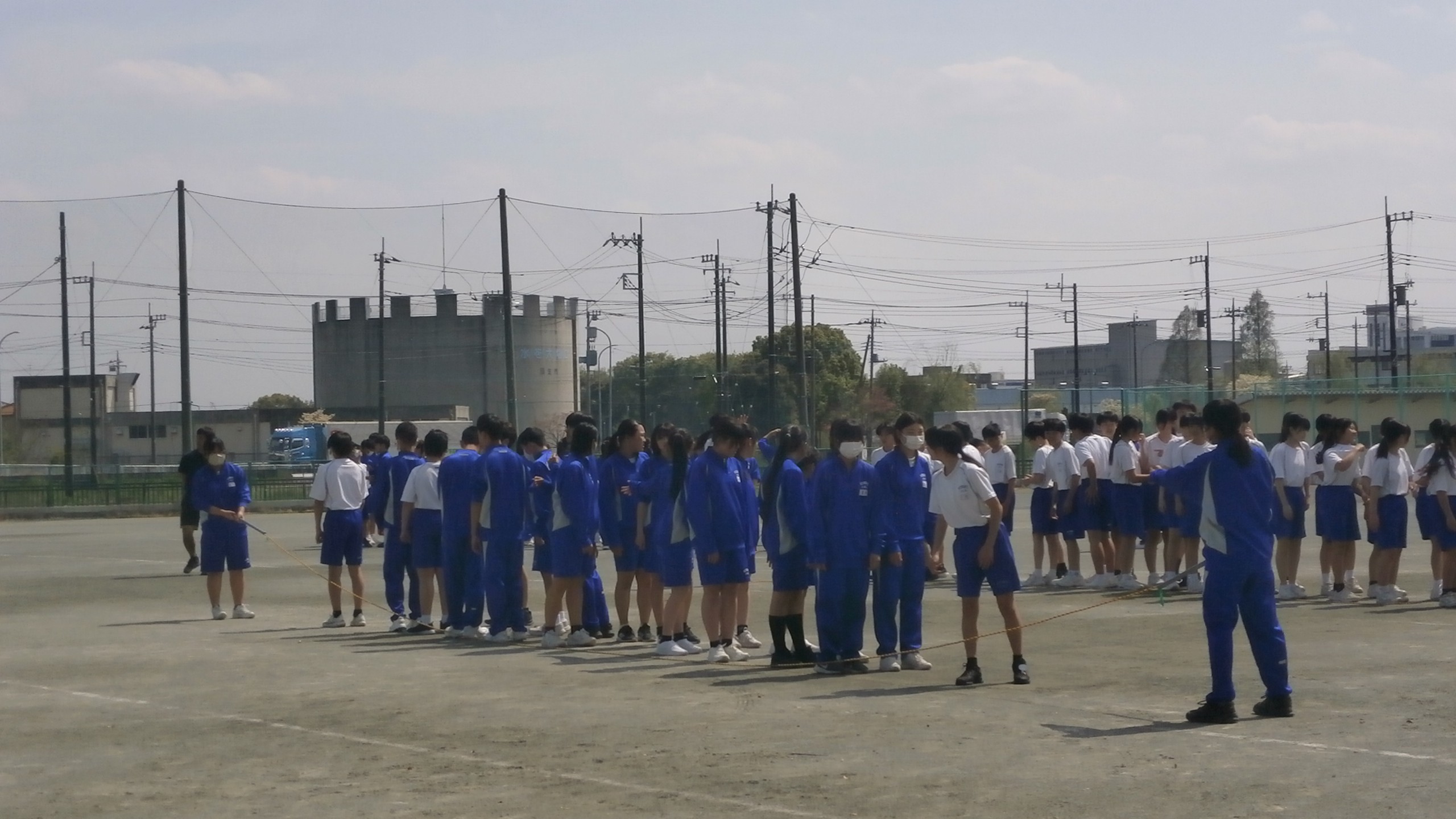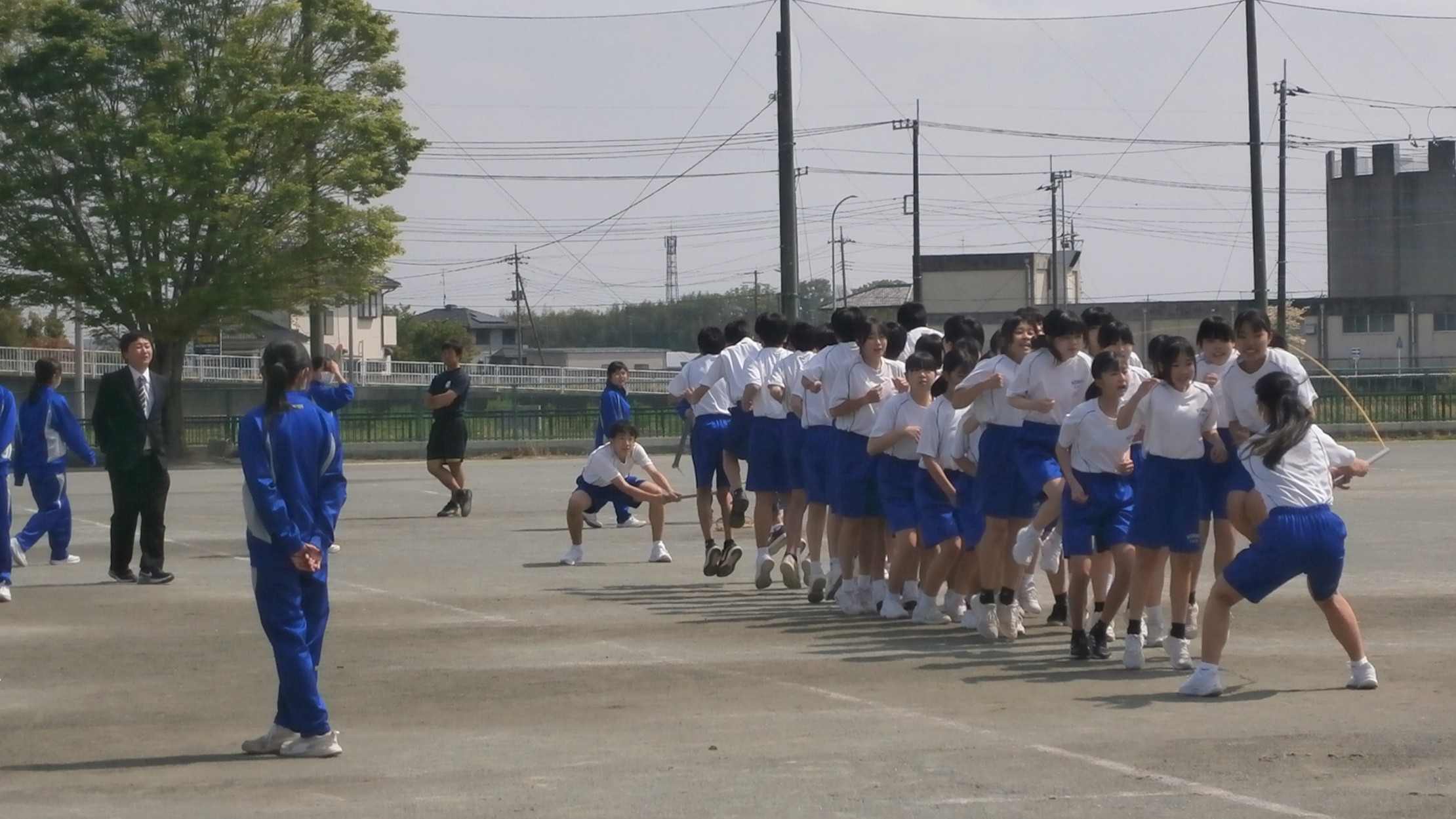 今日から体育祭に向けてのクラス練習(昼休みの自主練習)が始まりました。3年生が真っ先に校庭に出てきて、次に2年生が続いて、各クラスが担任に見守られる中、生徒たちが主体となって「なんちゅうJUMP」(長縄跳び)に取り組んでいました。本番は5月29日(金)です。まだ1か月半も先ですが、何事も準備(練習)が大切ですから!「目指せ努力の自己ベスト」ですね!!