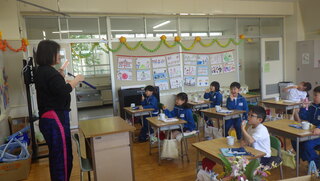 4月:1年生の給食&歯みがき指導