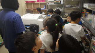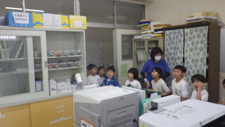 3時間目には、学校たんけんを1年生がしました。教室をまわり、地図にシールを貼りました。