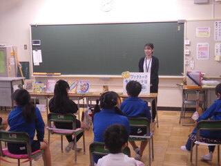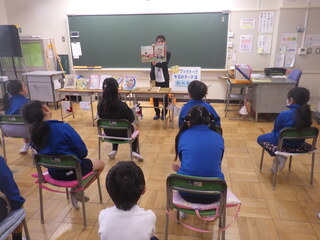 羽生市図書館の職員2名が3年生に「食べ物」をテーマにした本を紹介してくださいました。本の世界に引き込まれる子どもたちの目が輝いていました。