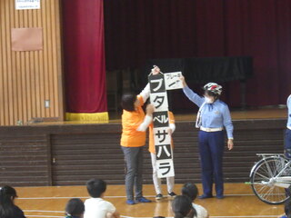 全学年を対象に、交通安全教室を実施しました。雨のため体育館での実施でしたが、子どもたちは自分の大切な命を守るために、交差点の渡り方や自転車の乗り方をしっかりと学ぶことができました。