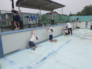 公開日 2025年06月06日 更新日 2025年06月06日 4,5年生がプールをきれいに掃除してくれました。おかげて気持ちよく水泳学習がスタートできます。一生懸命に取り組んでくれた子どもたち。ありがとうございました。