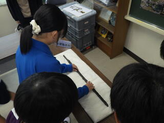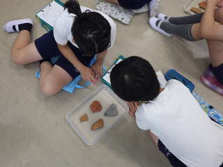 公開日 2025年06月20日 埼玉県立さきたま史跡の博物館の方々をお招きし、「金錯銘鉄剣」や「埴輪・土器」をメインにした、出前授業をしていただきました。本物の土器にも触ることができ、学びを深めることができました。