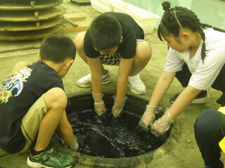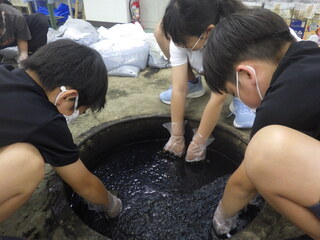 3年生が市民プラザへ出かけ、ハンカチの藍染体験をしました。植物からできていることに驚いている様子でした。また、自分でつくった、世界に一つだけの藍染のハンカチに心が躍る様子でした。