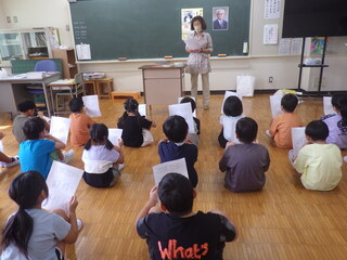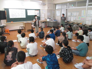 今日は希望者が登校し、宮澤章二先生を顕彰する会の方々の出前講座を受講しました。宮澤先生は本校の校歌を作詞した先生です。子どもたちはたくさんの詩に触れることができました。
