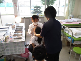 公開日 2025年09月04日 更新日 2025年09月04日 1時間目に歯科健診を行いました。むし歯がないかなど、学校歯科医の先生に確認をしていただきました。また、歯科健診のあとは、5年生が学校歯科医の先生より歯科指導を受けました。