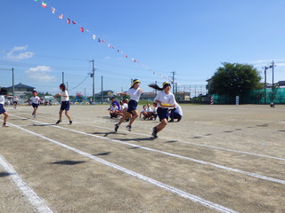 秋晴れの空の下、運動会を開催しました。「殻破れ!!絆深める新一魂 2025最高運動会」のスローガンのとおり、子どもたちは競技に真剣に取り組み、友達との絆を深めることができました。みんなの頑張りは最高でした!
