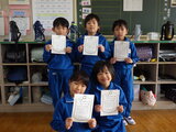 いい歯チャンピオンの児童がアンバサダーとして、今年度2回実施した歯科健診でむし歯や処置歯のない児童に表彰を行いました。
