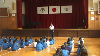 羽生警察署の協力をいただき、不審者対応避難訓練を行いました。子どもたちは教室にバリケードをつくり、自分の命を守る行動をとりました。また、訓練後には羽生警察の方より不審者から身を守る方法についてお話いただきました。