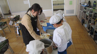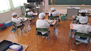 今日から2年生以上の給食がはじまりました。新しい先生と当番の仕方を確認しながらの配膳です。おいしくいただきました。