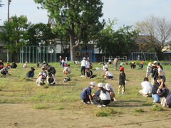 2学期開始に向けて、児童・保護者の皆さんと全校除草を行いました。