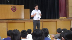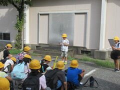 校長先生からのお話では、竜巻がくる前におきる空の様子や空気のようすについてのお話がありました。もし、外にいるときに竜巻がちかづいてきても、「自分の体を守ること」を第一に行動するようにというお話でした。