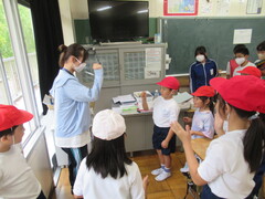 お菓子のできるまでをクイズ形式で学習したり、環境について体を使って学習したり、大きな地震のゆれを体験してきました。