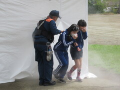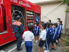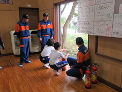煙体験、震度6強の地震体験、消防車見学、6年生による消火器の操作などを体験しました。