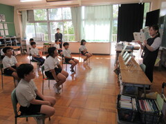 読み聞かせボランティアの方に来ていただきました。お話の内容に、引き込まれ、真剣に集中してお話を聞いていました。