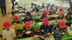 カレーのできる行程を教えていただいたり、大きなしゃもじやお玉を見せていただいたりと、いつもおいしくいただいている給食がどのようにできるかを学ぶ機会となりました。