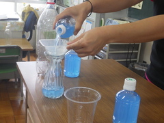 1年生の算数の授業では、水の量の学習をしていました。
