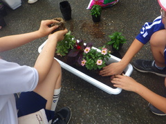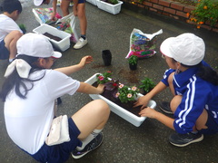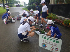 贈呈式、花植えは代表して「緑化・栽培委員会」の児童が参加しました。