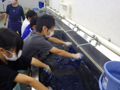 3年生の藍染め体験学習を市民プラザで行いました。
