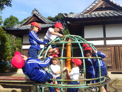 神社にある遊具を使って、1,2年生の交流を深めることもできました。