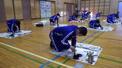 一人一人が真剣に書と向き合う姿でいっぱいの体育館でした。