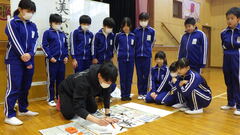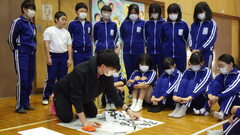 書道の先生に来ていただき、細かい所まで、御指導いただきました。