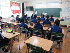 避難後、児童は不審者を引き渡すまでをVTRを観て学習しました。羽生警察署の方からは「不審者に出会ったら、まず逃げる」というお話しをいただきました。児童一人一人が「自分の命を守る行動」をとれるよう、これからも指導していきたいと思います。