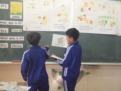 何をしている時間かを聞くなど、会話形式の学習をしています。