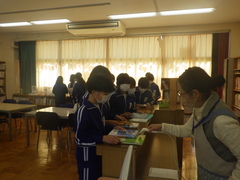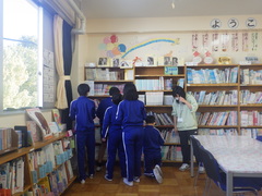 毎週金曜日は、学校司書の先生がいらっしゃいます。児童は自分の興味のある本を探したり、おすすめの本を紹介してもらったりしながら、読書に取り組んでいます。