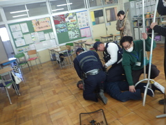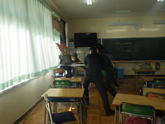 羽生警察署の方に来ていただき、「不審者対応訓練」を行いました。6年生の教室に侵入した想定で、安全に児童が避難すること、通報した後、警察官が到着するまで、犯人を引き渡すまでの訓練を行いました。