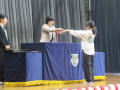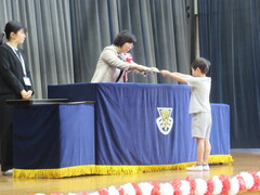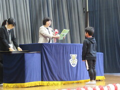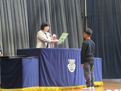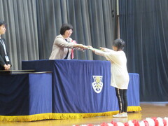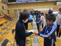 令和6年度修了式を行いました。各学年の代表児童に修了書が渡されました。また、児童の代表による「1年をふり返って」の作文発表がありました。1年間でたくさんの事ができるようになったことや、これから頑張りたいことを述べてくれました。