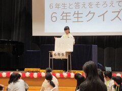 今年は、6年生一人一人に関するクイズを在校生徒と一緒に答えていく内容でした。