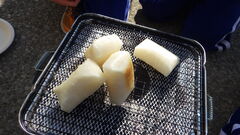 七輪で餅を焼きました。火加減が難しいようでしたが、餅を焼きおいしくいただきました。