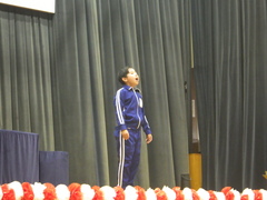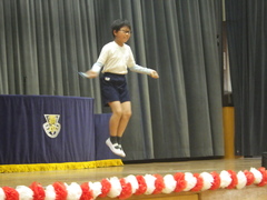 子供たちの特技発表会を行いました。これは、子供たちからの発案で、日頃、自分が頑張っていることを披露したいということで実施しました。子供たちは、なわとび後ろ二重跳び・ダンス・ピアノ・空手・独唱・漫才と自分の特技を堂々と披露していました。