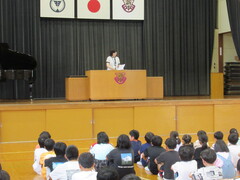 最後に、夏休みの過ごし方について担当の先生からお話しがありました。安全で、楽しい夏休みを過ごす新二っ子でいましょう。
