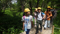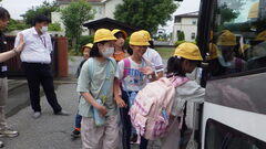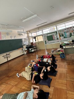 水難事故防止の一つとして「着衣泳」を行いました。水の事故の恐ろしさ、もし、水の中に落ちてしまったり、溺れてしまったら、体に力を入れず浮かぶこと、そして、近くにペットボトルやビニル袋があったら、空気を入れて胸の上に抱えることなどを学び、練習しました。